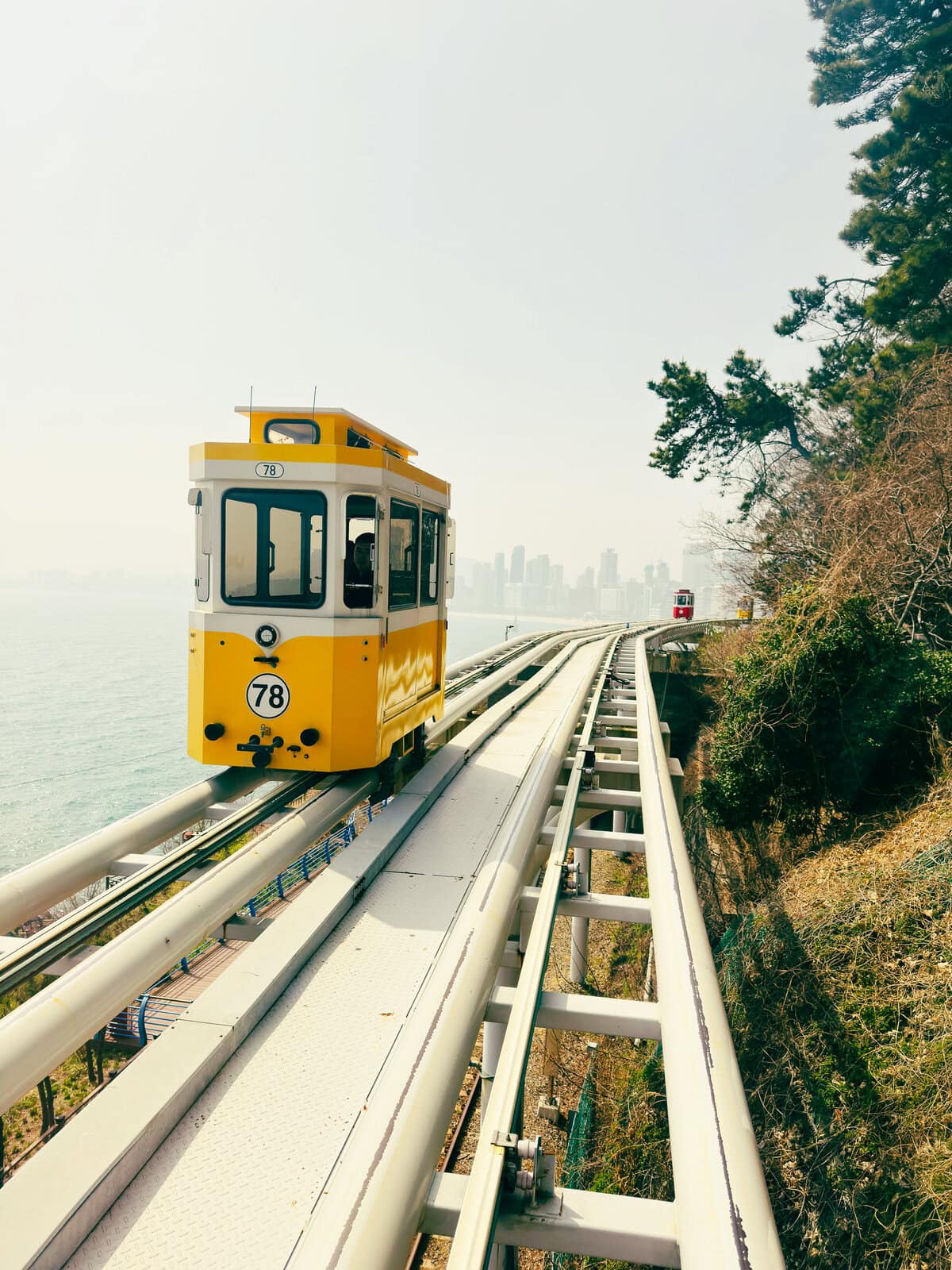 With all this eating, I’m glad we’re doing so much walking. We’ve wandered around colourful Gamcheon Cultural Village, a former shanty town, various markets, and temples such as Haedong Yonggungsa set in beautiful gardens that wind down 108 stairs to the rocky coastline. To get back, we board cute little train carriages on the Blue Line Park Sky Capsule, which trundle along an elevated track.