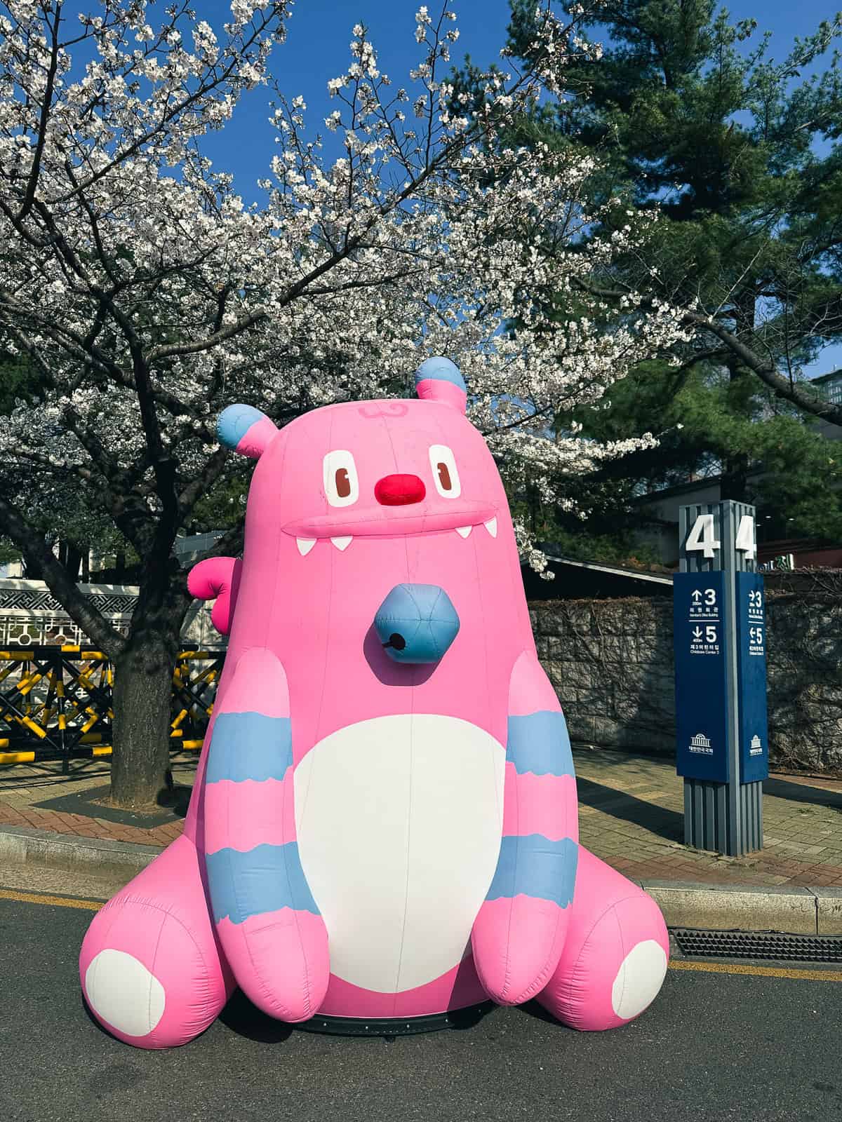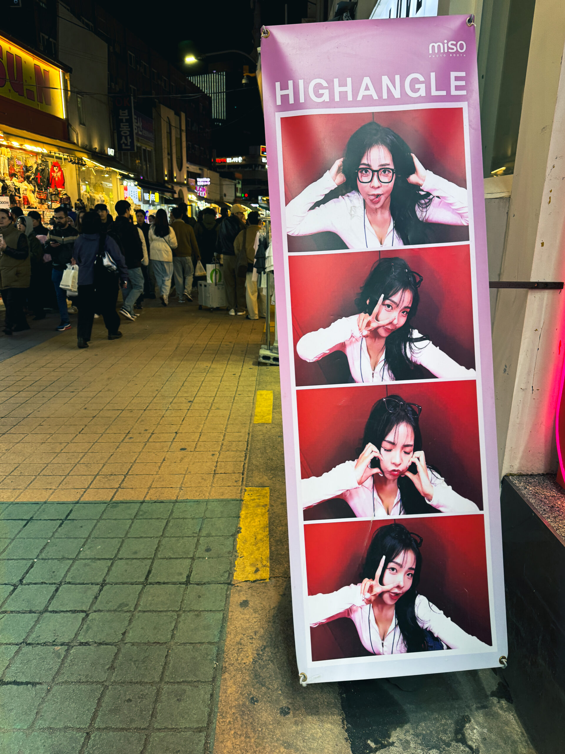 We’re staying in Hongdae, the hip and cool university district. It’s so hip and cool that many bars check your ID not to make sure you’re of drinking age (19), but that you’re no older than 30 – otherwise, you’re not allowed in! There’s plenty of fun to be had for those of us over 30, though – at night, this district is all neon signs, food stalls, dancing musicians streaming their performances, and shops selling vintage clothing, makeup and the latest in fashion and Hallyu merch.