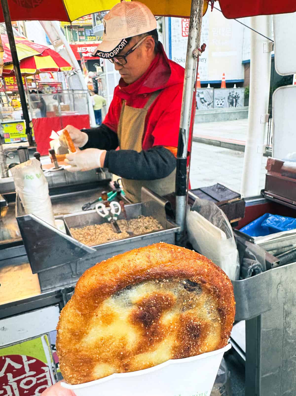 At the next stop, we sip on makgeolli, a milky, fizzy rice wine not to be confused with the more potent soju, the equivalent of saki in Japan. Makgeolli is lower in alcohol and consumed at around the same pace as beer.