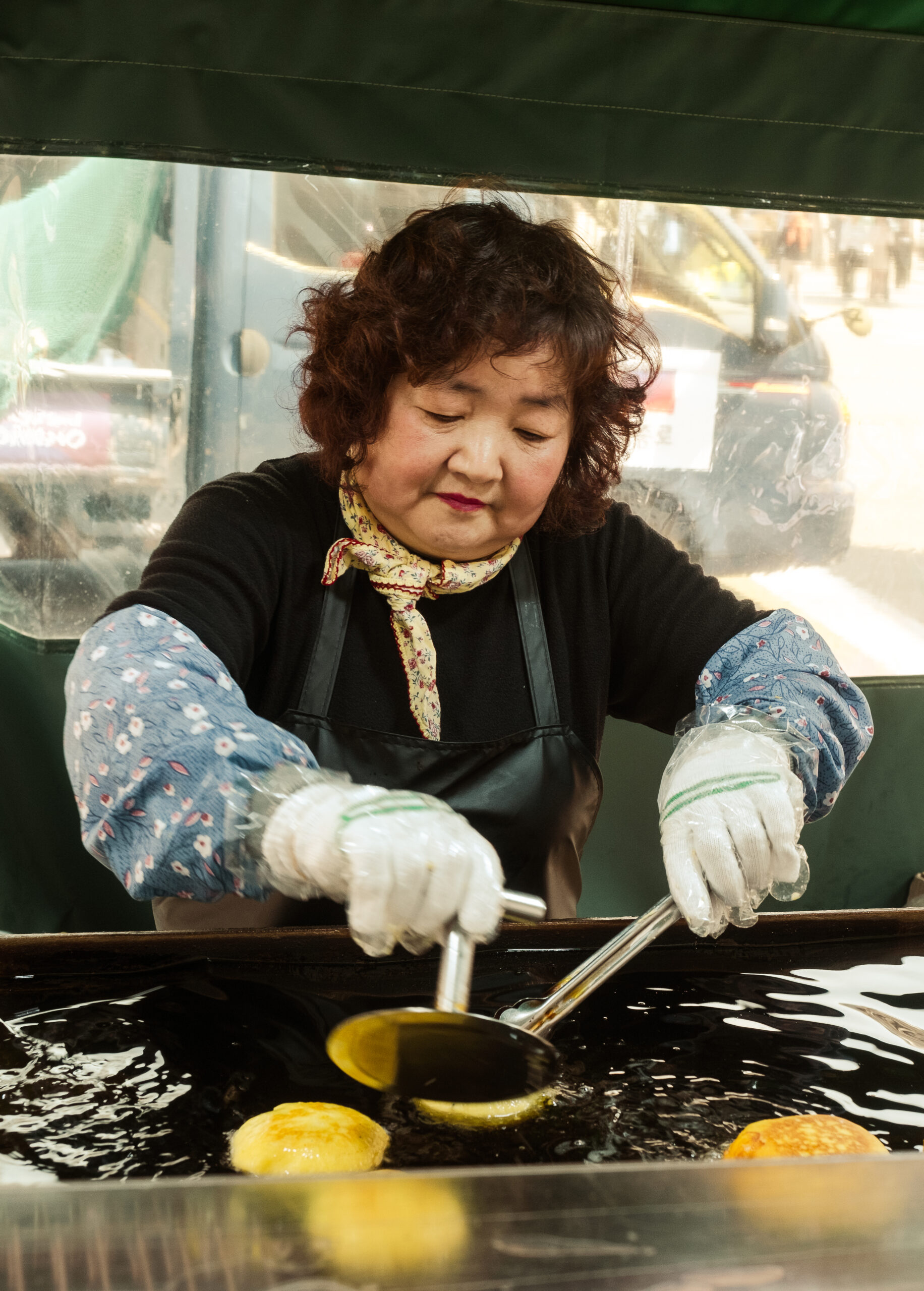 Cooking at home is rare in Korean households, Jun says, so opportunities to eat are everywhere. Eating out or ordering in is the norm, apartment living is preferred, and many women don’t teach their daughters how to cook so they won’t have to do it when they get married.